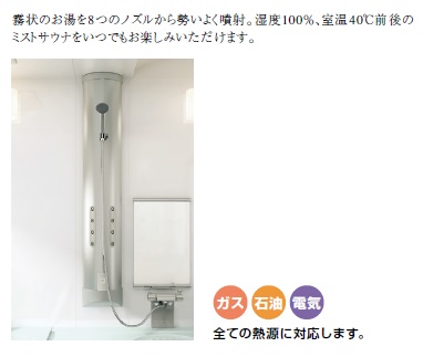 「くつろぎミストタワー」は、8つのミストノズルから霧状のお湯を浴室全体に噴射。