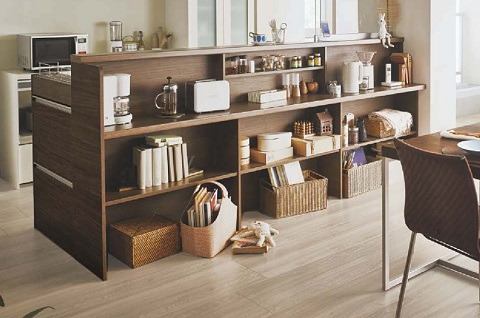 ダイニング側に収納があるタイプは調理家電などを置くと