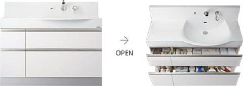 ※引出しタイプの場合、シャワー付シングルレバー水栓のみ組み合わせ可能です。