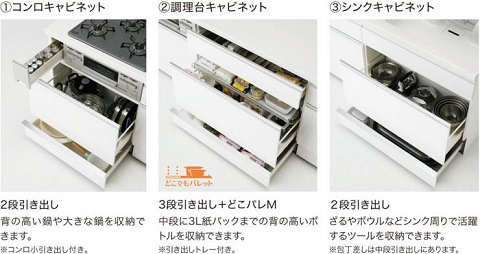 出し入れしやすさと収納力を考えた引き出しレイアウトです