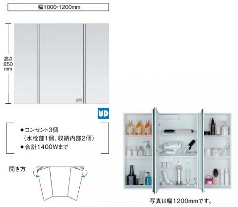 化粧小物など小さなものとバケツなどの大きなものを、引出部と扉部で