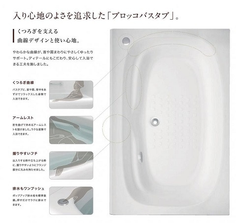 ゆるリラ浴槽・・身体を支える面を増やすことで間接にかかる力を分散し、