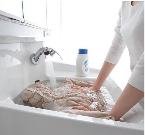 その大きさは、上半身がしっかりおさまるので、洗顔時にもヒジからの水垂れがしにくい形状です。