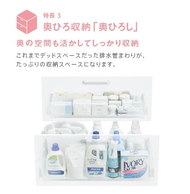 リニューアル理由はこの形のほうが、サイド部分に手前にも奥にも小物が置けるということだそう