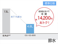 いつも通りに使っていても経済的。TOTOの環境テクノロジーです。従来の約1/3の水で洗浄する、進化した節水技術。